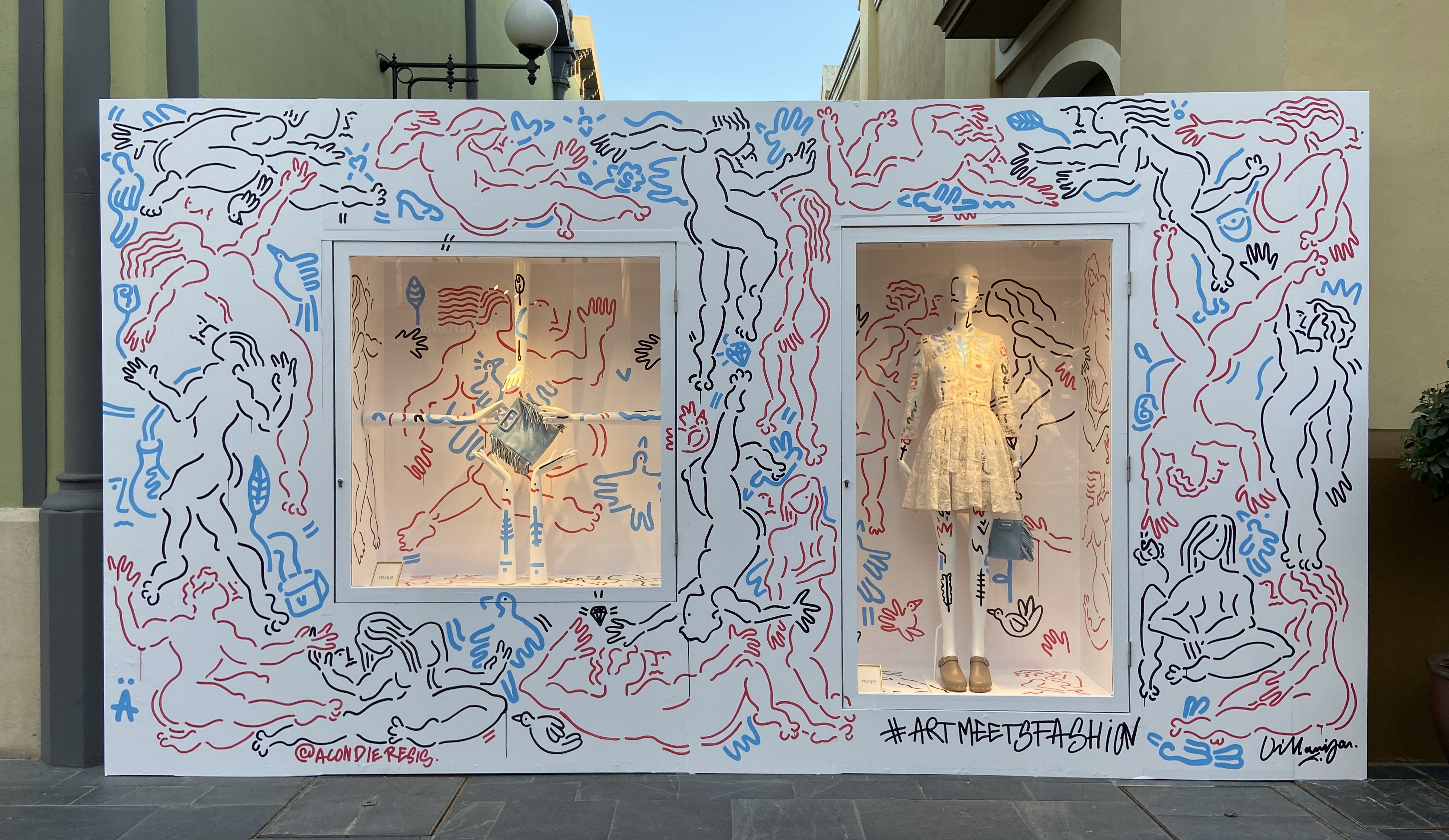 Through 10 artists, selected by UVNT, Las Rozas Village is transformed into a place where fashion and art generate a dialogue around creation. Under the slogan #ArtMeetsFashion, the participating artists will create a work of art especially for their interaction with a very specific space, such as some facades of the different buildings that make up the Village, the walls that delimit the spaces, the boulevards around which the boutiques are articulated or some architectural elements such as porches or access areas.