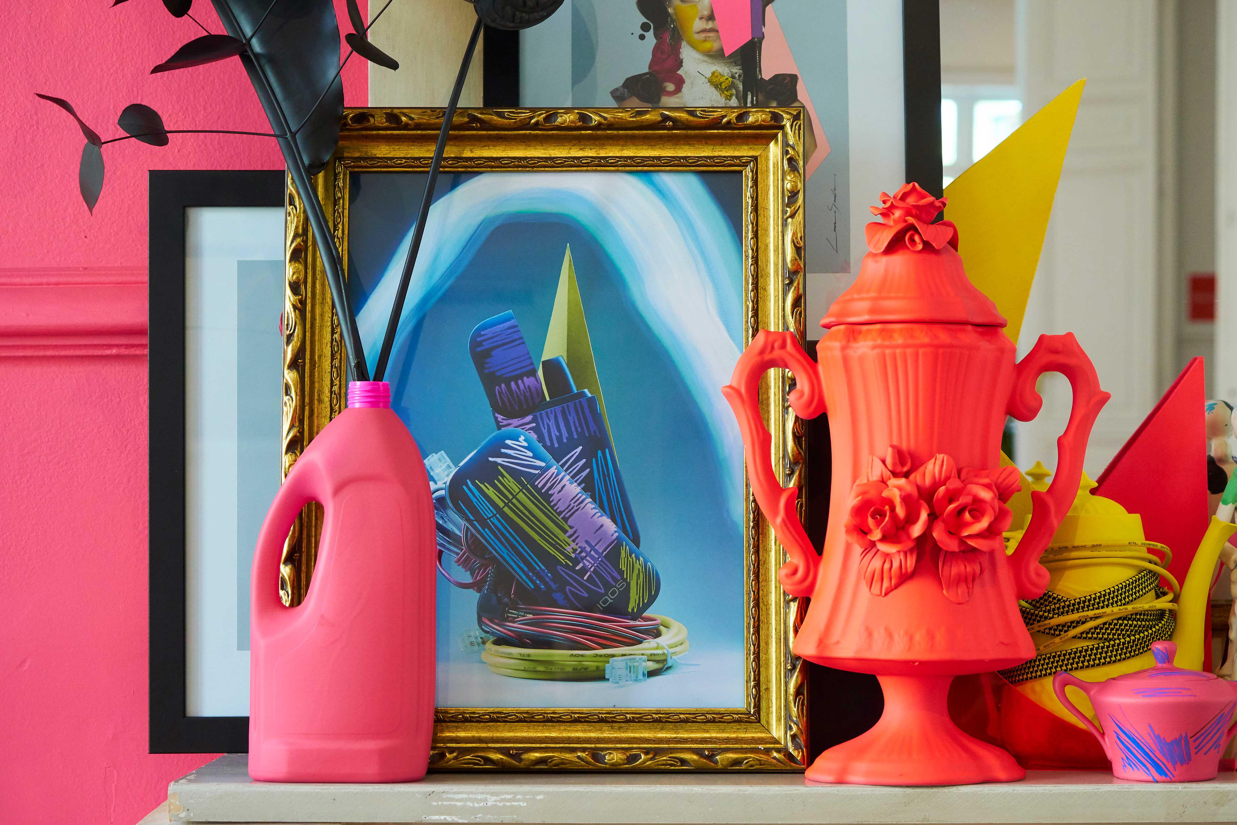 El placer y la belleza de los objetos y todo lo que nos rodea sea natural o artificial era la clave de la exposición “JUNGLE” que presentó el artista Lauro Samblás junto a Urvanity Projects en el nuevo espacio IQOS Co_Lab Café en Madrid, una jungla urbana donde la tecnología y la naturaleza se abrazaron en armonía. El fetichismo por los bodegones, los colores saturados, el orden que transmite la geometría y el caos del collage son los ingredientes que el artista presentó en esta exposición donde arte, moda y publicidad se unieron en el mismo lenguaje.