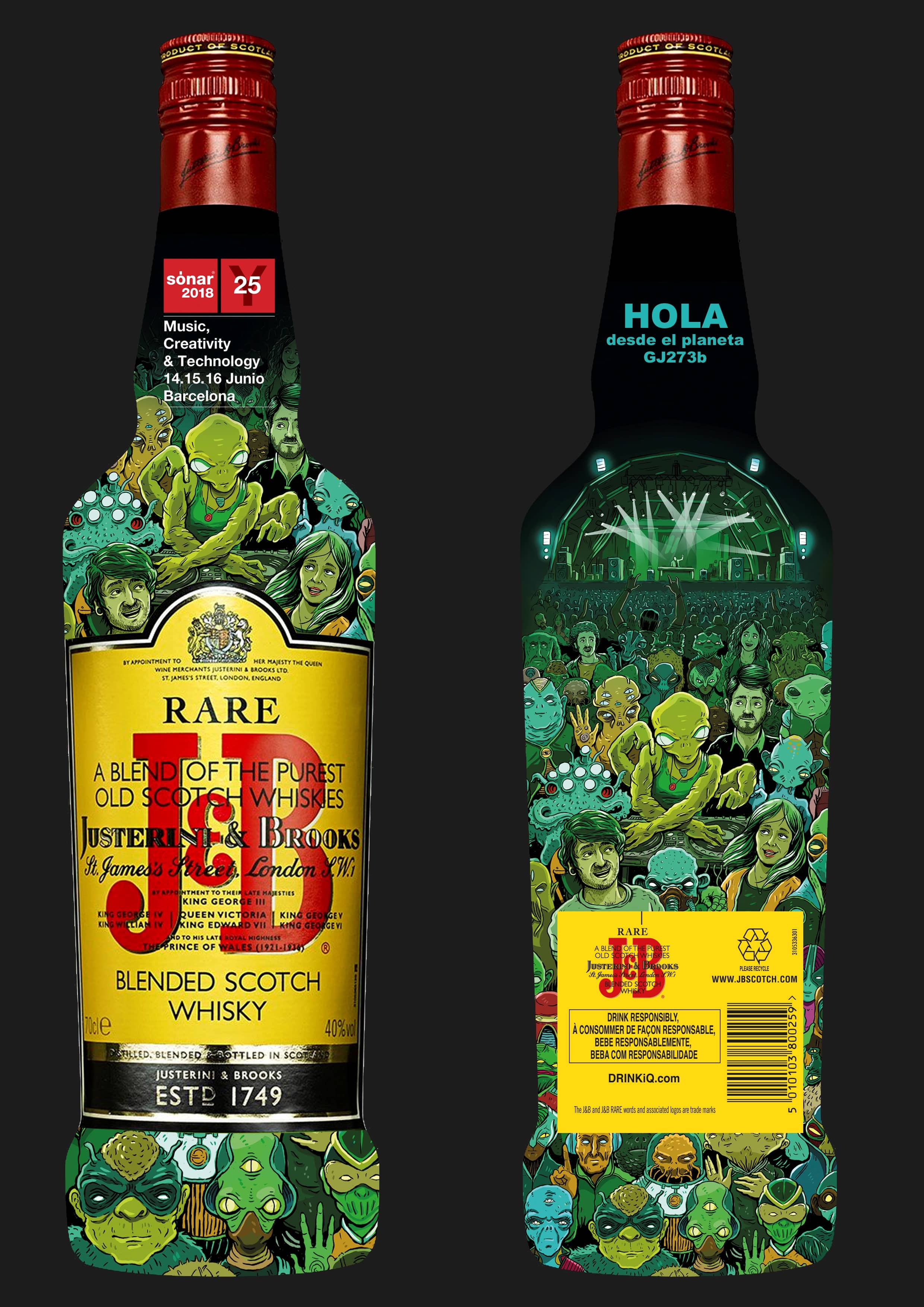 Este año Urvanity Projects se ha unido a J&B y a Sónar Barcelona, el festival más vanguardista del panorama nacional, para comisariar una Edición limitada de botellas, creadas con motivo del 25 aniversario del festival. Urvanity invitó al ilustrador segoviano Jorge Tabanera a realizar el diseño exclusivo de esta edición de lujo que, al igual que el evento, está inspirado en la estrella Luyten b, y con el que hemos celebrado los mejores momentos de cada concierto.