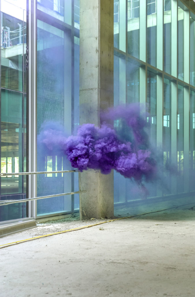 Como comenta el artista, “este proyecto es para mí una forma de dialogar con el entorno para representar la forma física del silencio. Busco siempre lugares que tengan un fuerte significado espacial, como los lugares en transformación, donde las fuerzas del medio ambiente cobran una mayor presencia y juegan un papel más impredecible en el proceso. El humo es moldeado por el entorno mismo, y en relación con Caleido fue particularmente estimulante. En tal lugar, con la actividad incesante del edificio y todos los elementos naturales combinados, el tiempo de espera no era una opción. La presencia del edificio es muy fuerte y es posible verlo en la forma en que moldeó el humo de una manera más impredecible. Parece que el silencio en Caleido habla más, como si incluso el silencio tuviera algo que decir.”