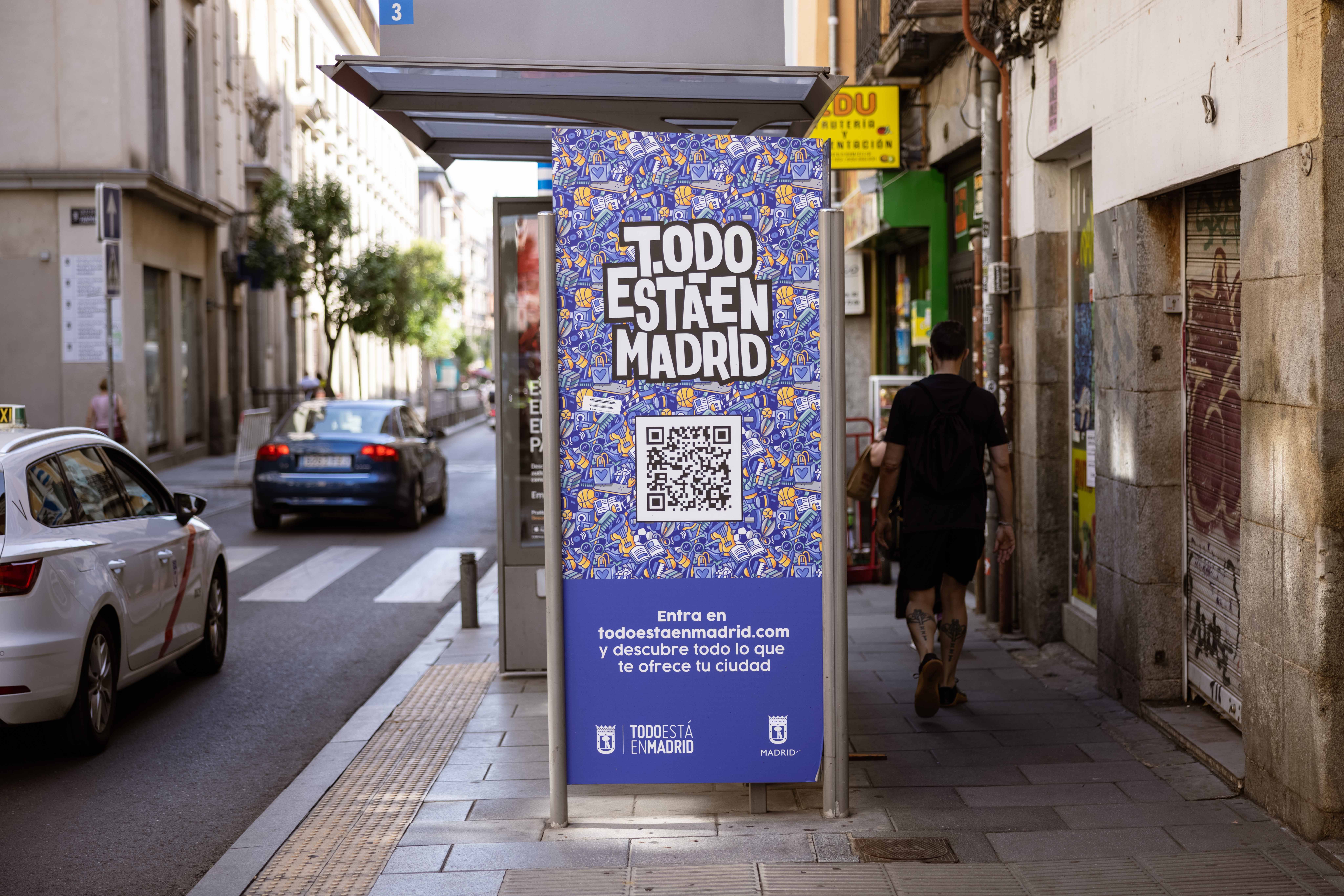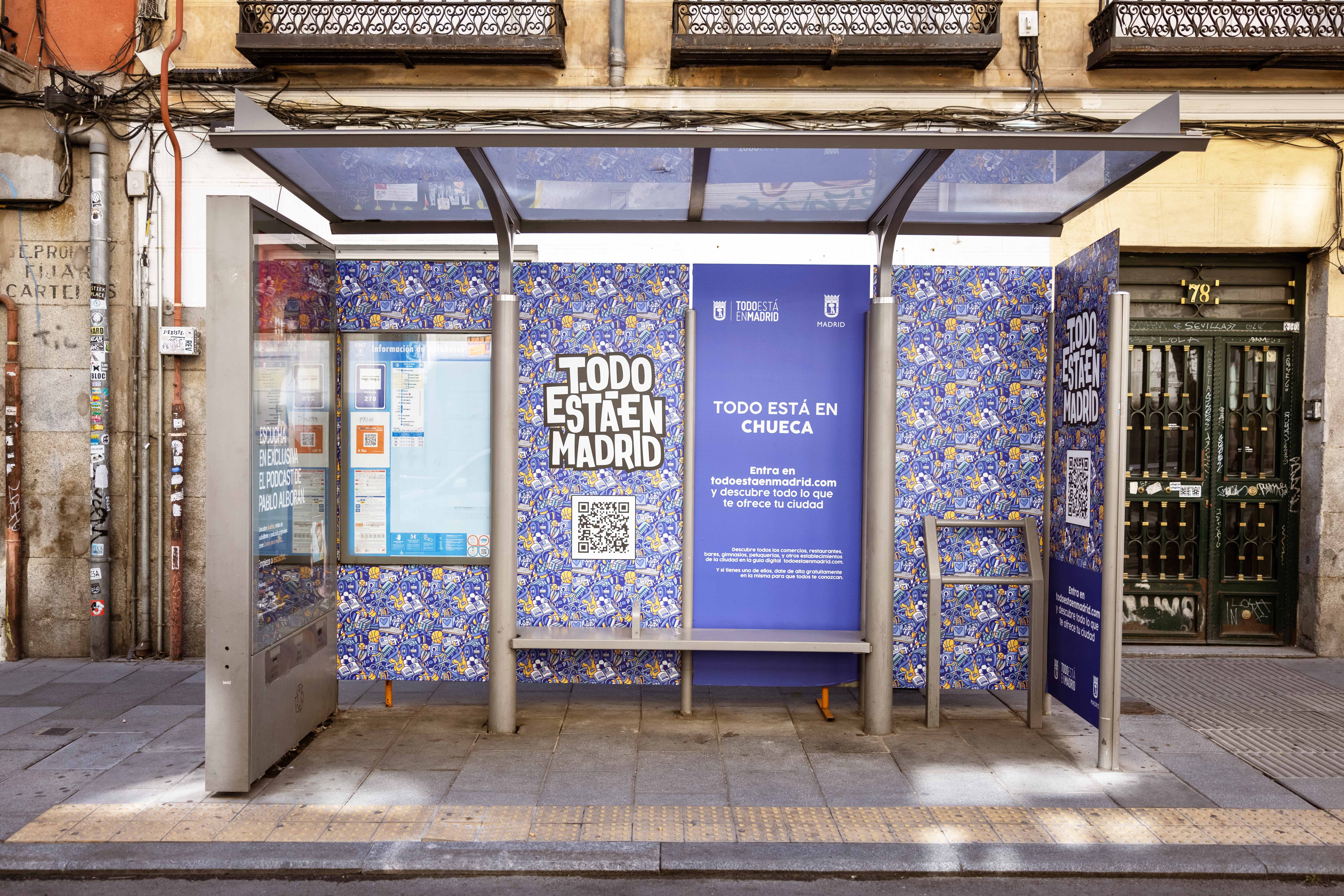 Junto con el artista Juan Díaz-Faes desarrollamos la campaña TODO ESTÁ EN MADRID junto con Madrid Capital de Moda para dar a conocer los comercios de cada barrio a través de códigos bidi ubicados en marquesinas y autobuses de la capital.